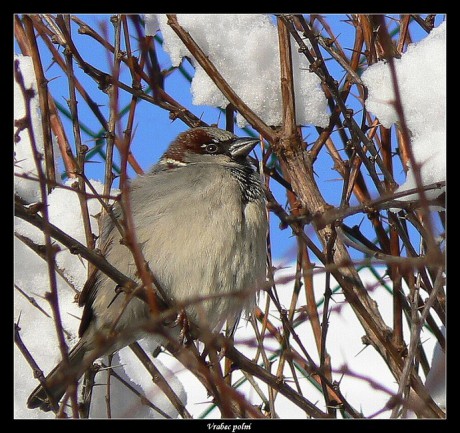 Vrabec domácí se v dálce jeví jako poměrně nenápadný zavalitý pták, ale při bližším pohledu, zvláště pak na samce, jde o poměrně pestře zbarveného ptáka. Má krátký zobák, poměrně dlouhá křídla a krátký ocas.Délka těla: 14-15 cm. Rozpětí křídel: 21 cm..